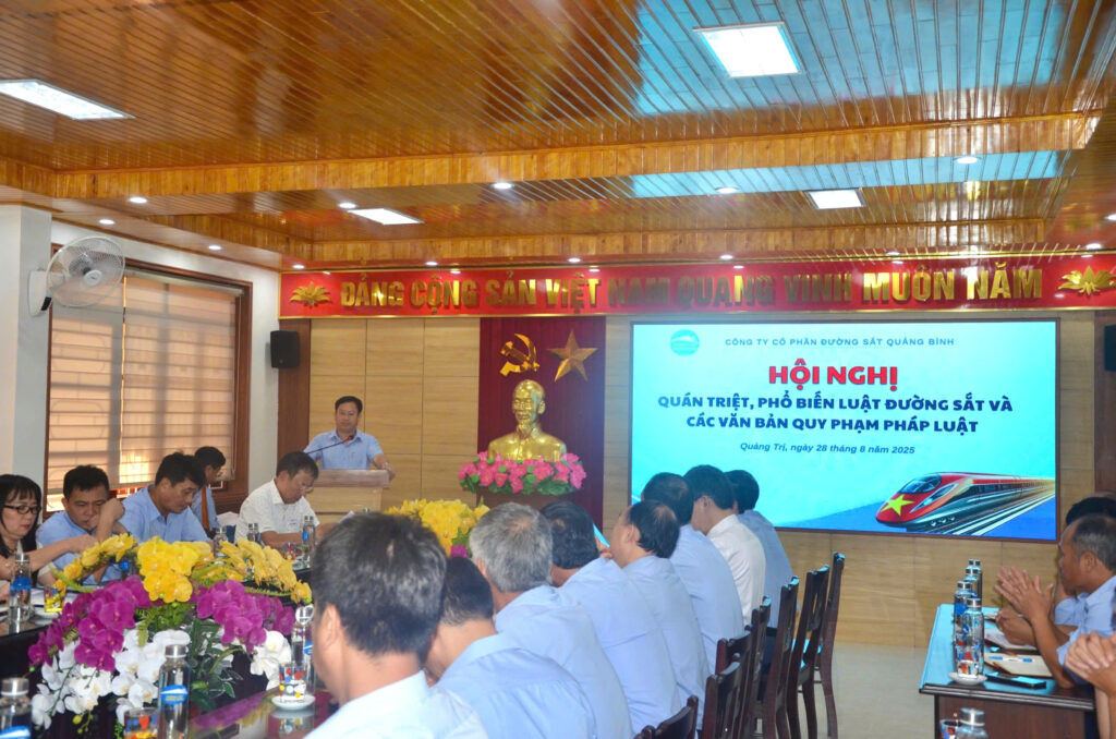 Ngày 28/8/2025, Công ty cổ phần Đường sắt Quảng Bình đã tổ chức Hội nghị quán triệt, phổ biến Luật Đường sắt năm 2025 và các văn bản quy phạm pháp luật mới. Đây là hoạt động có ý nghĩa quan trọng nhằm cập nhật, triển khai kịp thời những quy định mới của pháp luật vào thực tiễn sản xuất kinh doanh, góp phần nâng cao hiệu quả hoạt động của Công ty trong giai đoạn mới.